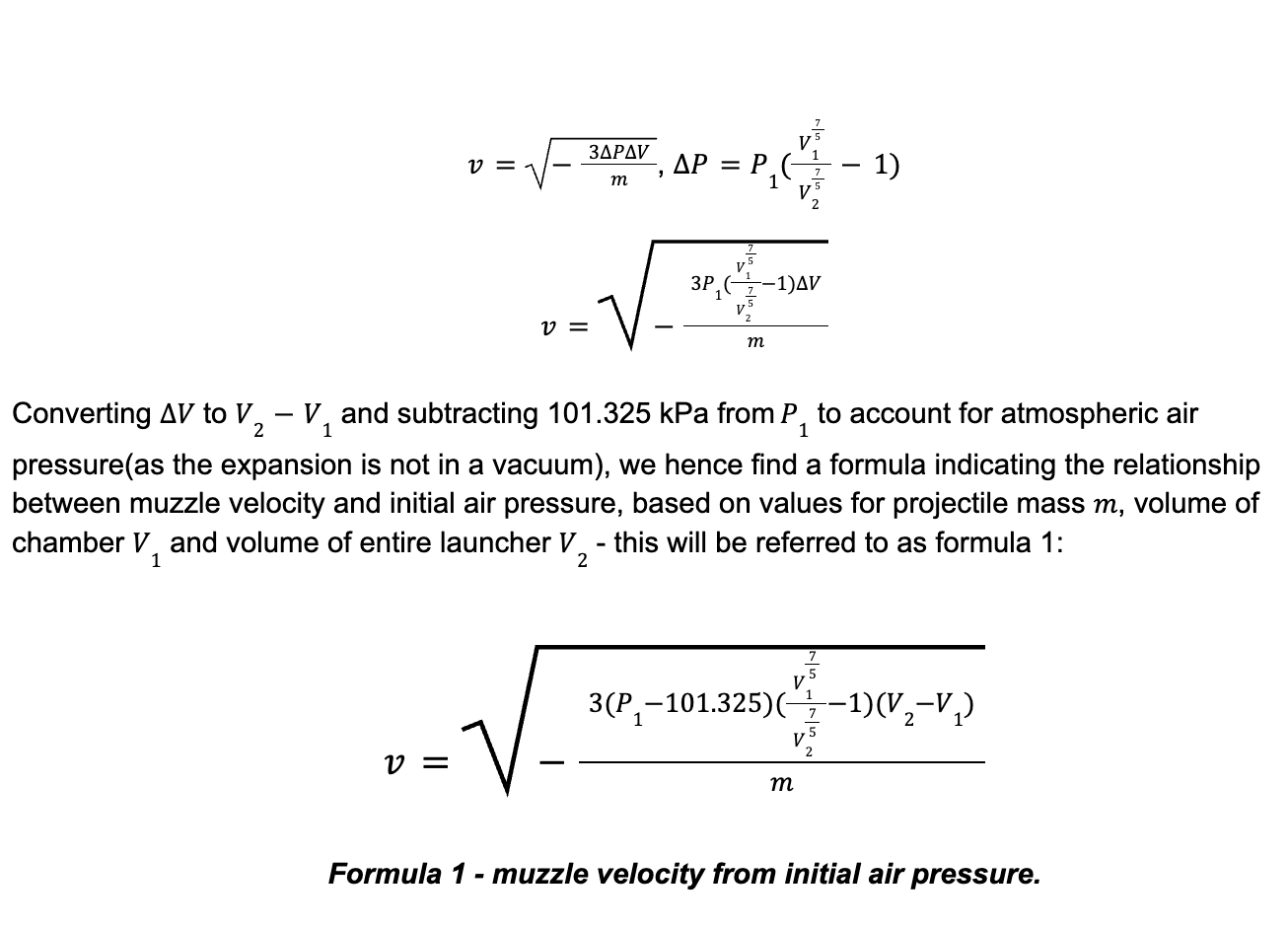 Derived closed-form energy and pressure relationships using adiabatic expansion models to predict muzzle velocity and chamber efficiency, then validated calculations using an experimental setup.
